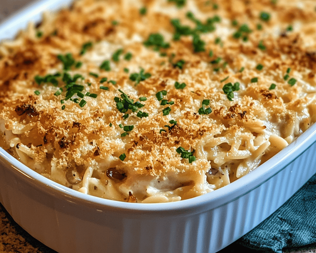 How to Make French Onion Chicken Orzo Casserole
