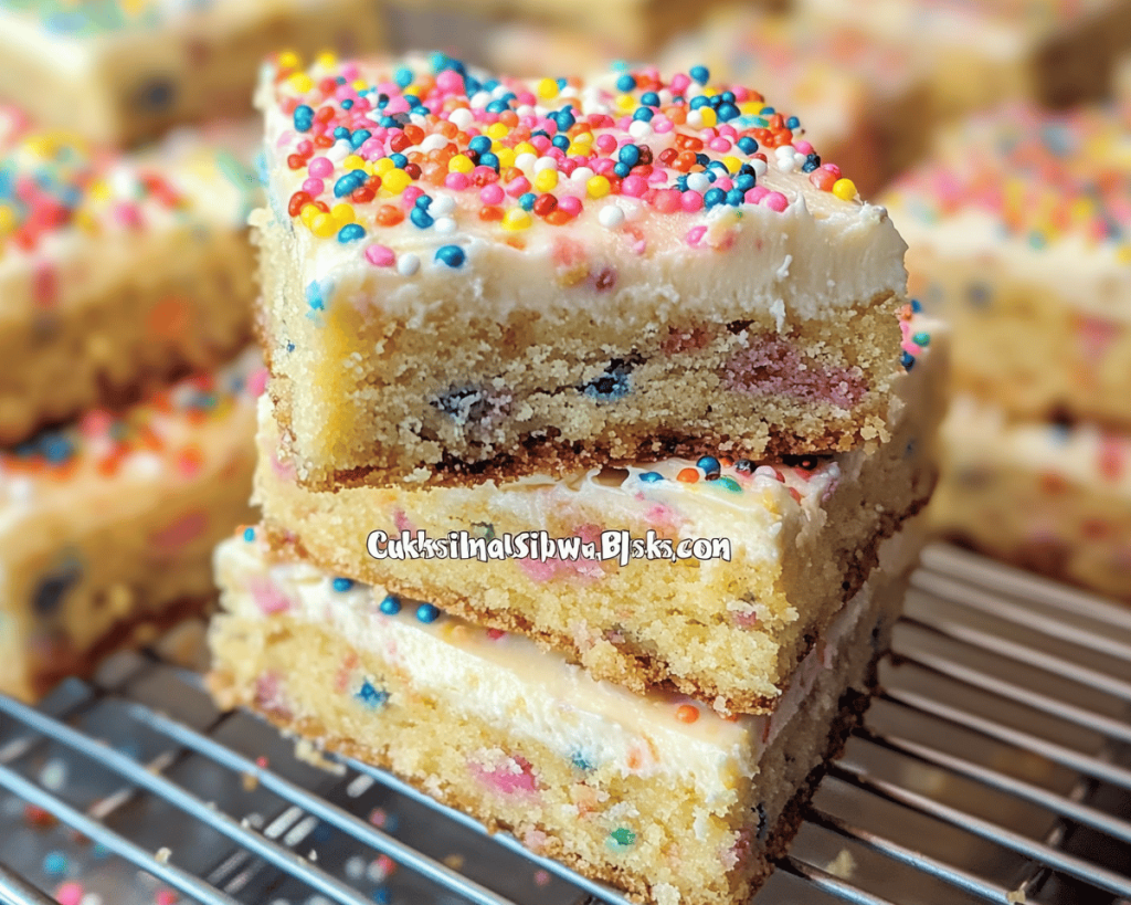 There you have it, a delightful recipe for **Cake Batter Bars with Buttercream** that marries nostalgia with modern baking simplicity. It’s a joy to watch these vibrant bars transform from a mere bowl of ingredients into a delightful treat that evokes smiles and satisfaction. I invite you to bake a batch tonight, savor the aroma of the buttery cake batter, and delight in the sweetness of life one bar at a time.