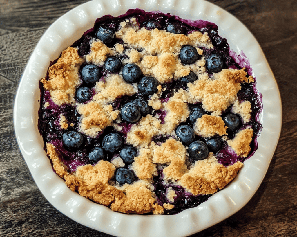 5. **Bake**: Place the dish in your preheated oven and bake for about 30-35 minutes, or until the topping is golden brown and a toothpick inserted into the center comes out clean. Your kitchen will fill with the intoxicating aroma of baked blueberries and buttery crust!