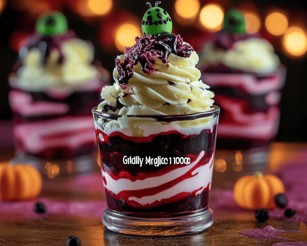 – **Gummy Worms or Halloween Candies:** For that final spooky touch, you can add delightful gummy worms crawling atop your mini trifles.