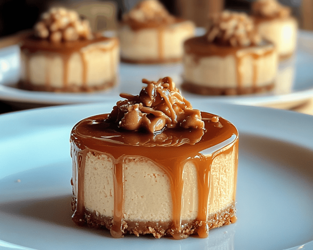 **Meta Title:** Irresistible Peanut Butter Caramel Mini Cheesecakes
