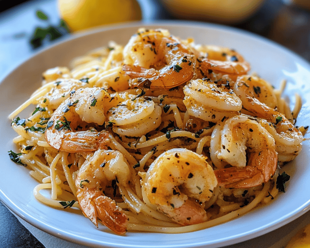 While freezing isn’t ideal for the pasta—since it can turn mushy when thawed—you can freeze the shrimp and sauce separately. When ready to enjoy, simply thaw and reheat on a skillet over low heat.